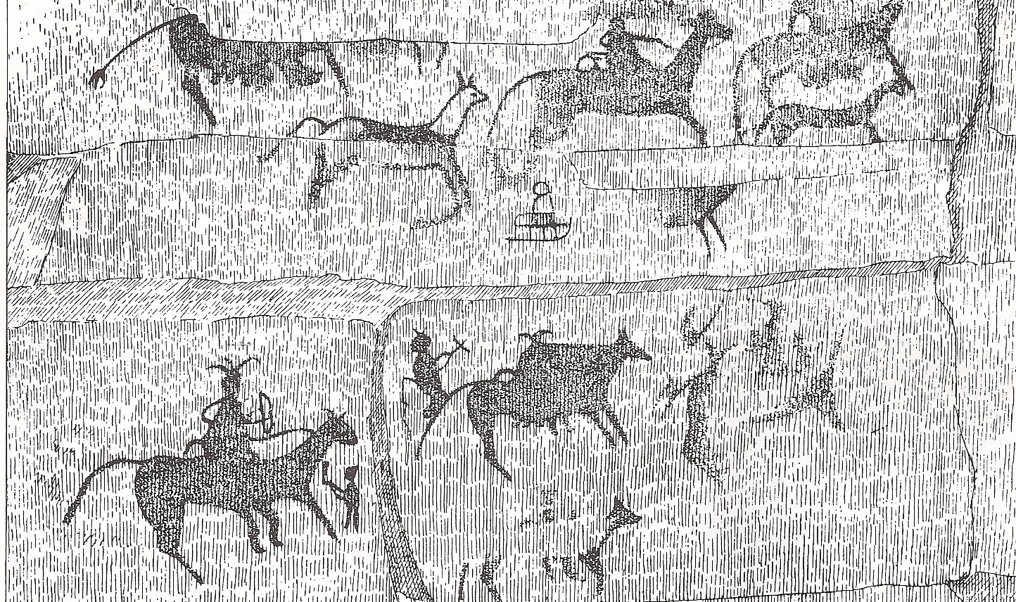 Kuva 6. Piirroksia Kisil-Kajan kallioissa Abakanin sivujoen Uibatin lähellä. (1.10.1988)